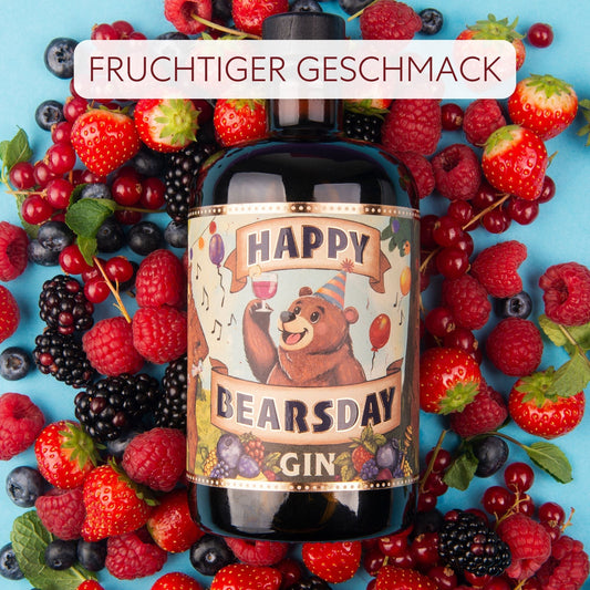 "Happy Bearsday Gin begeistert mit seiner fruchtig-beerigen Note und bringt ein erfrischendes Erlebnis ins Glas – ein Muss für jeden Gin-Liebhaber."